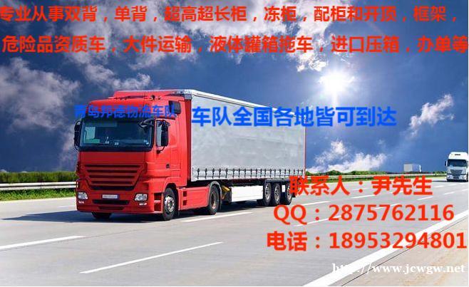 青岛邦德集装箱运输车队,专业从事普货、冷冻集装箱运输,我司除以上业务外,还专业从事青岛港进出口集装箱拖车,黄岛港码头集装箱车队,进口压箱,办单,内贸集装箱双背重货运输,危险品资质车辆运输,液体罐箱拖车,开顶、框架、超高超宽特种车等。
